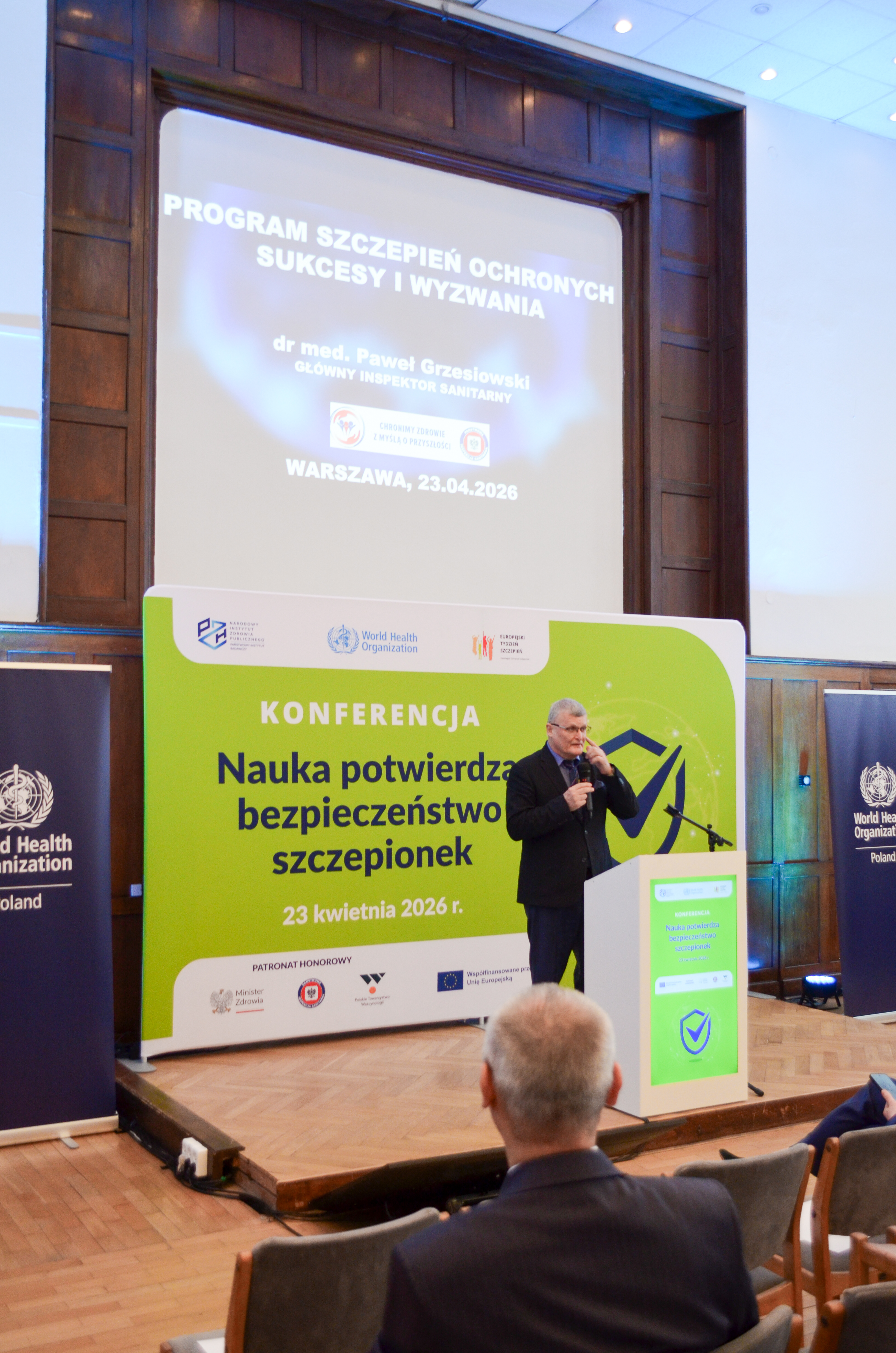 23 kwietnia 2026 r. odbyła się konferencja poświęcona bezpieczeństwu i skuteczności szczepień ochronnych, stanowiąca ważną przestrzeń do merytorycznej wymiany wiedzy pomiędzy ekspertami z obszaru zdrowia publicznego, nadzoru sanitarnego, medycyny oraz badań naukowych.