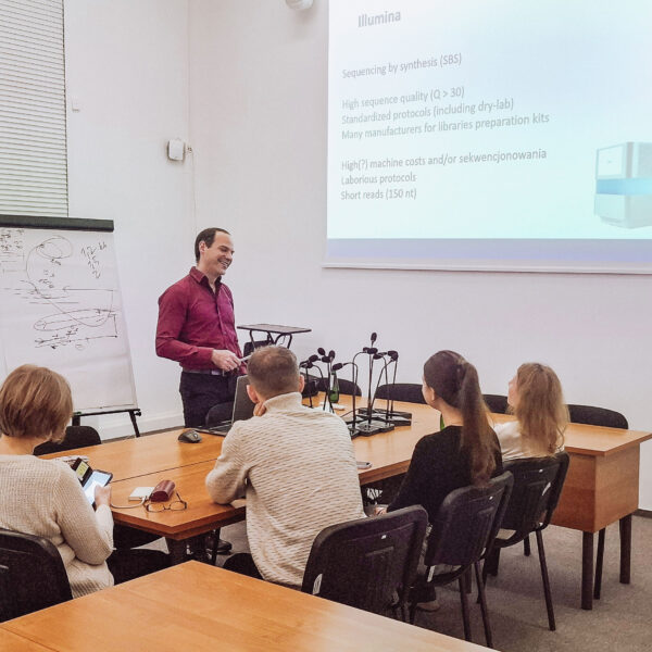 Podczas zajęć uczestnicy zdobywali praktyczne umiejętności laboratoryjne – od przygotowania próbek i konstrukcji bibliotek do sekwencjonowania, przez kontrolę jakości DNA i bibliotek oraz ich normalizację, po automatyzację procesów laboratoryjnych i wstępną analizę danych sekwencyjnych. Szkolenie sprzyjało również wymianie wiedzy i doświadczeń między uczestnikami i prowadzącymi, umożliwiając dyskusję nad najlepszymi praktykami w nadzorze genomowym i bioinformatyce.