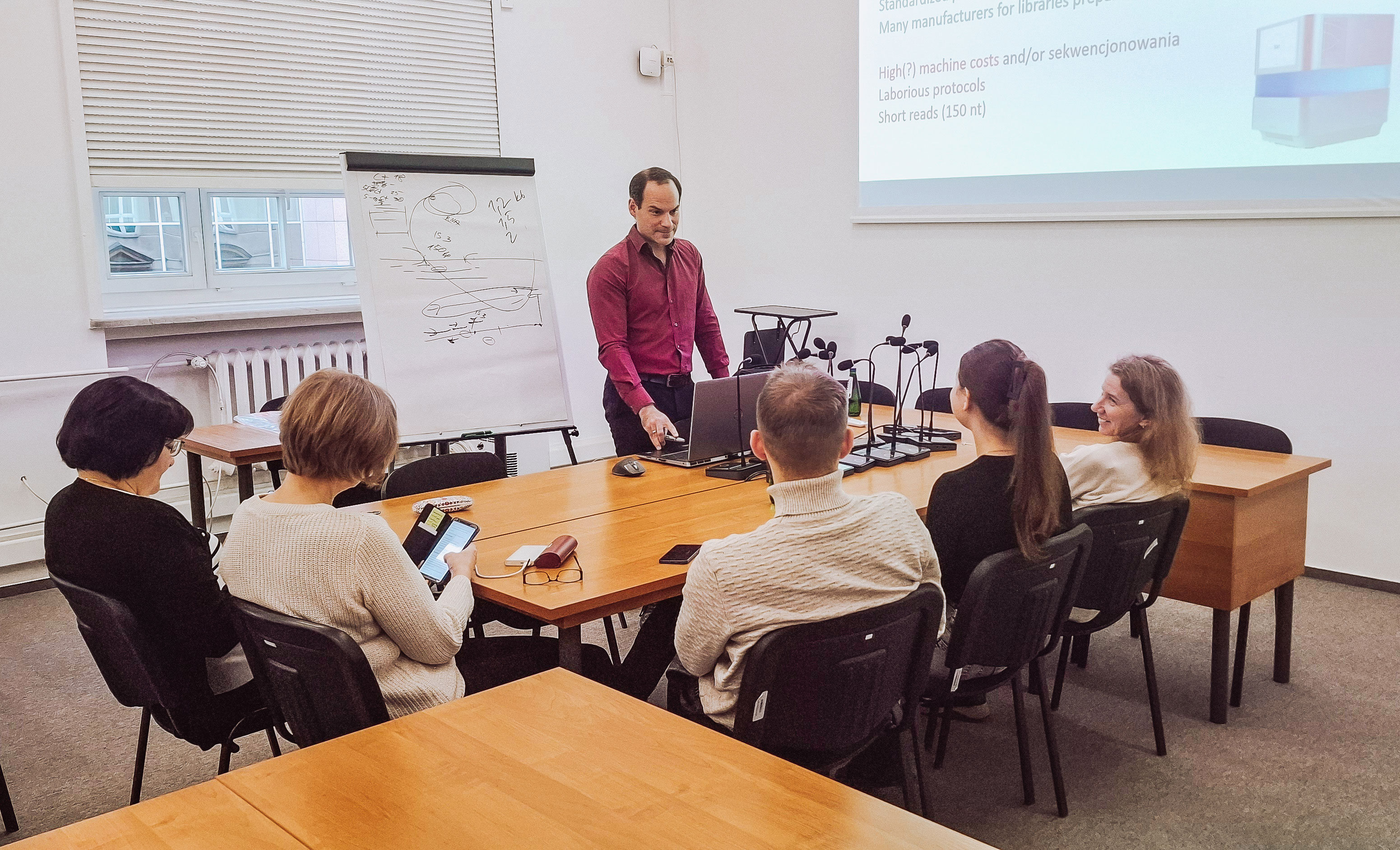 Podczas zajęć uczestnicy zdobywali praktyczne umiejętności laboratoryjne – od przygotowania próbek i konstrukcji bibliotek do sekwencjonowania, przez kontrolę jakości DNA i bibliotek oraz ich normalizację, po automatyzację procesów laboratoryjnych i wstępną analizę danych sekwencyjnych. Szkolenie sprzyjało również wymianie wiedzy i doświadczeń między uczestnikami i prowadzącymi, umożliwiając dyskusję nad najlepszymi praktykami w nadzorze genomowym i bioinformatyce.