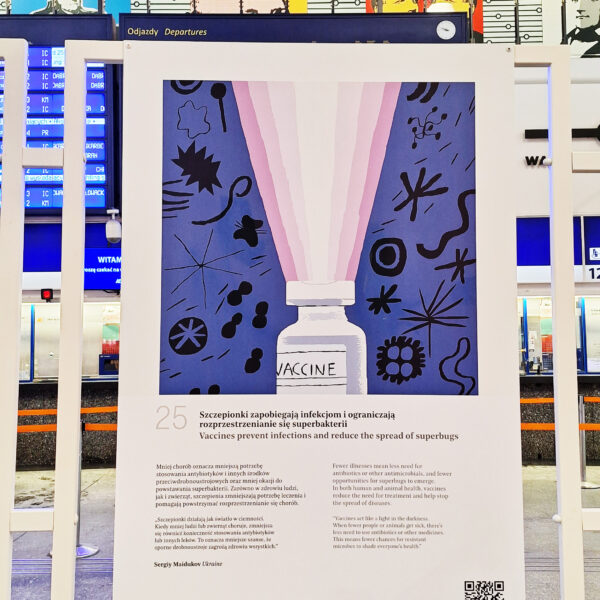 Dworzec Centralny w Warszawie stał się miejscem otwarcia wystawy ,,Obrazując lekooporność: 30 historii, jedno zdrowie’’. To inicjatywa w ramach projektu EU-JAMRAI 2, która łączy prace 30 artystów z 30 krajów Europy w celu zwiększenia świaodomości jednego z największych wyzwań zdrowia publicznego naszych czasów – oporności na środki przeciwdrobnoustrojowe (AMR). Wystawa będzie dostępna w Hali Głównej dworca do 3 marca 2026 r.
