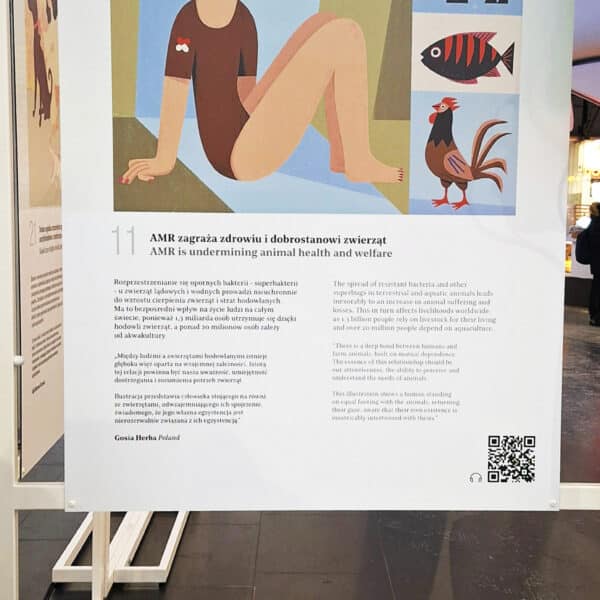 O AMR mówimy, kiedy mikroorganizmy (bakterie, wirusy, grzyby, pasożyty) przestają reagować na leki podawane w celu ich eliminacji jest to transgraniczne zagrożenie dla zdrowia publicznego, występujące na całym świecie. Na skutek lekooporności niektóre choroby przestają być możliwe do wyleczenia albo ich leczenie jest trudniejsze, wydłużone i wiąże się z powikłaniami. Szacuje się, że AMR w samej Unii Europejskiej powoduje ponad 33 tys. zgonów rocznie i generuje koszty w wysokości ok. 1,5 mld euro. Lekooporność dotyczy ludzi, zwierząt I środowiska, o czym przypomina nam obecna wystawa.