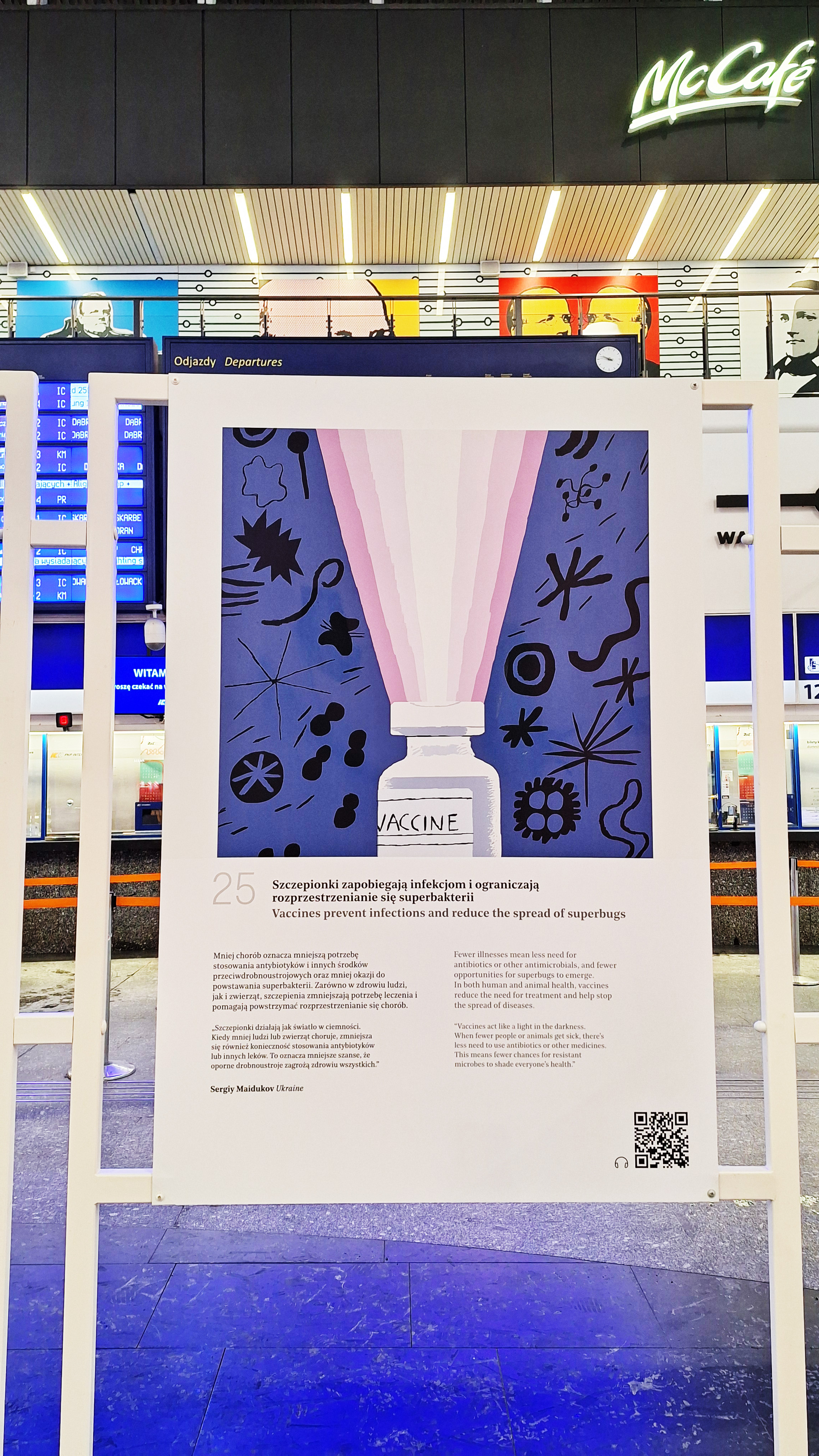 Dworzec Centralny w Warszawie stał się miejscem otwarcia wystawy ,,Obrazując lekooporność: 30 historii, jedno zdrowie’’. To inicjatywa w ramach projektu EU-JAMRAI 2, która łączy prace 30 artystów z 30 krajów Europy w celu zwiększenia świaodomości jednego z największych wyzwań zdrowia publicznego naszych czasów – oporności na środki przeciwdrobnoustrojowe (AMR). Wystawa będzie dostępna w Hali Głównej dworca do 3 marca 2026 r.